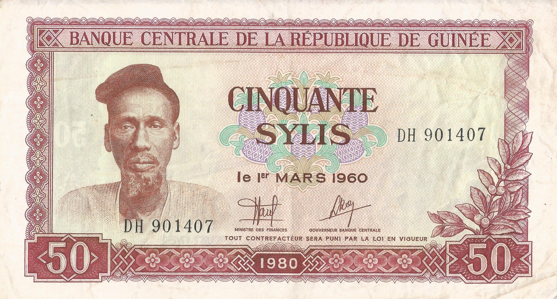 En 1985 se reintrodujo el franco con una tasa de cambio de 1 GNF = 1 syli. Se acuñaron monedas de 1, 5, y 10 francos, y más tarde se añadieron las denominaciones de 25 francos en 1987, y 50 francos en 1994. Los billetes que se imprimieron fueron en denominaciones de 25, 50, 100, 500, 1.000 y 5.000 francos.