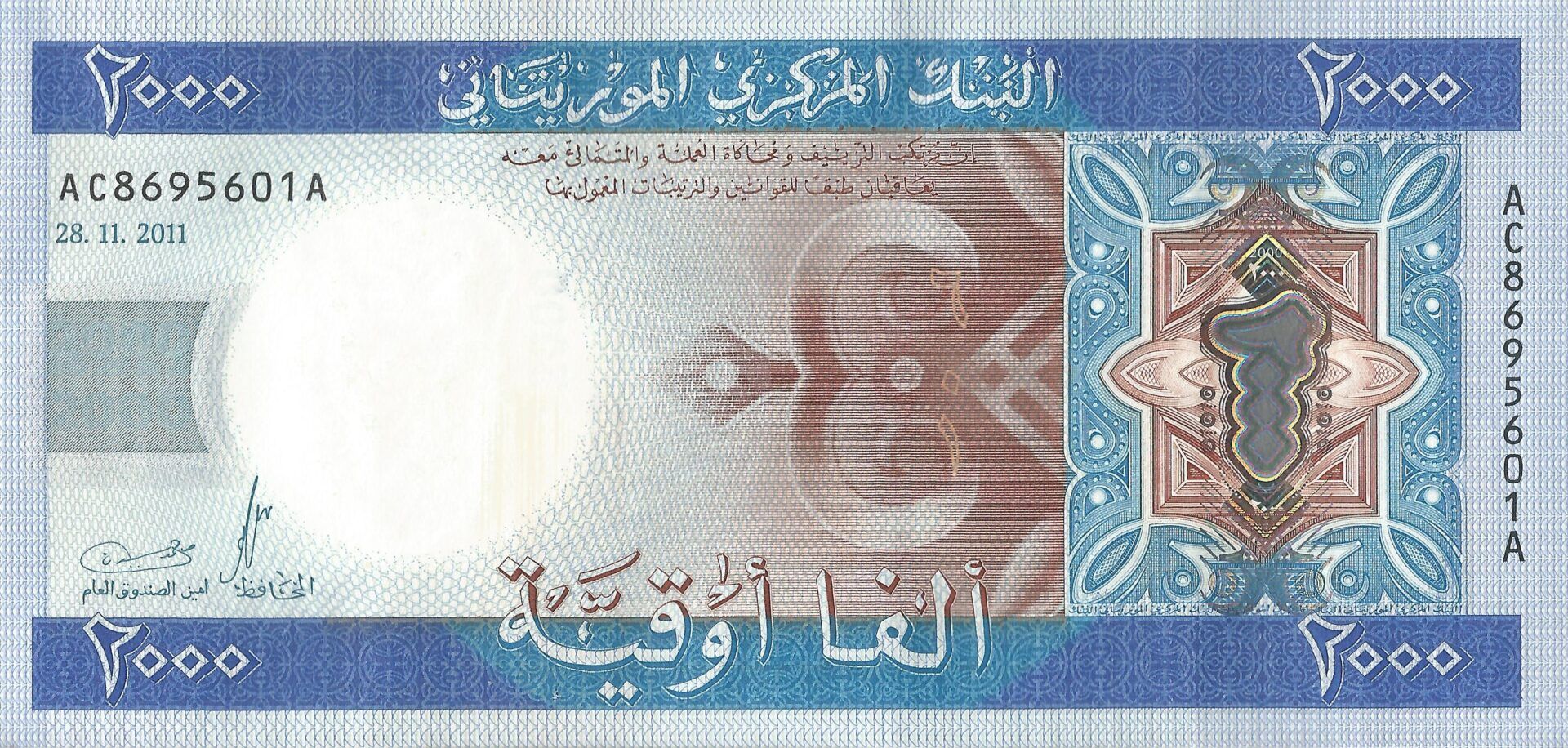 En 2004, se incorporan a los billetes nuevos elementos de seguridad y se añade la denominación de 2.000 uguiya, la última emisión de billetes se realiza en 2010, cuando se suma al cono monetario una nueva denominación de 5.000 uguiya.