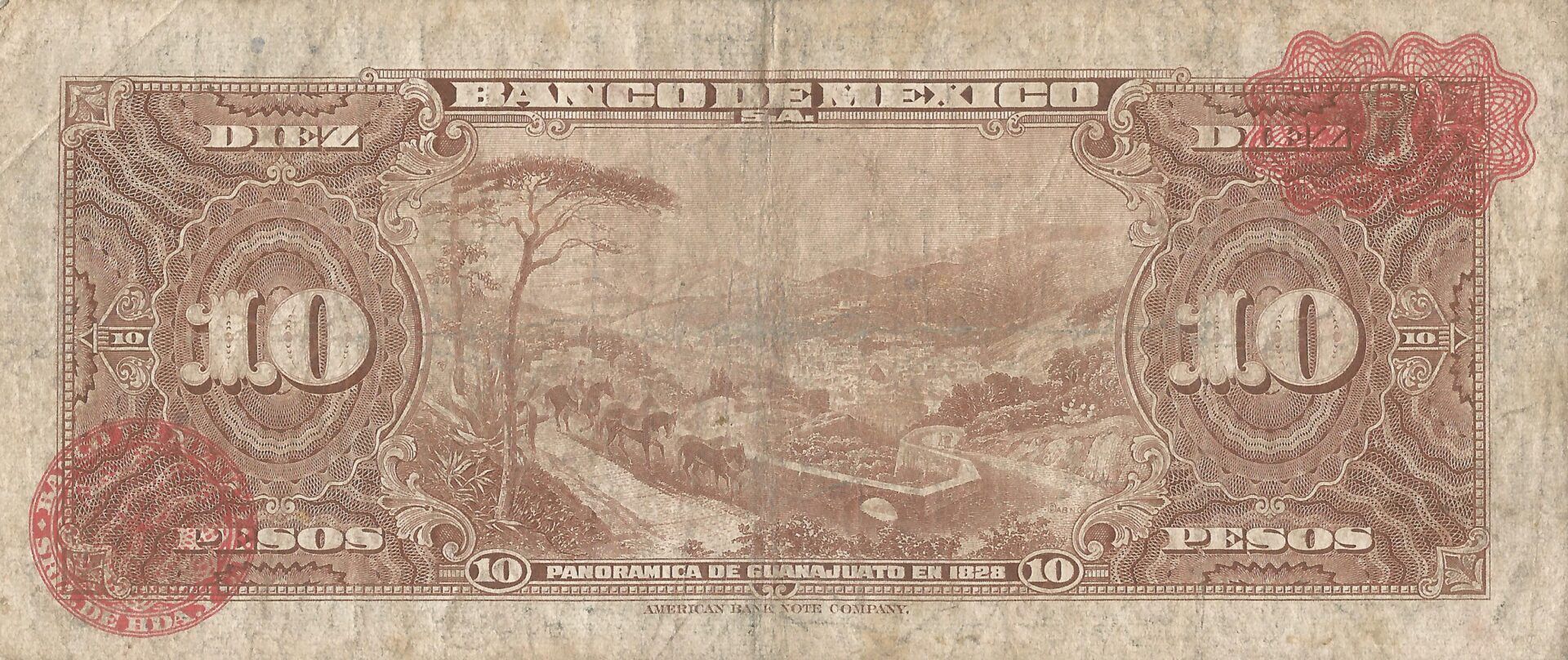 - MÉXICO, los 10 PESOS de 1934 de la serie «Alegorías» de la ABNC