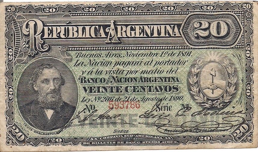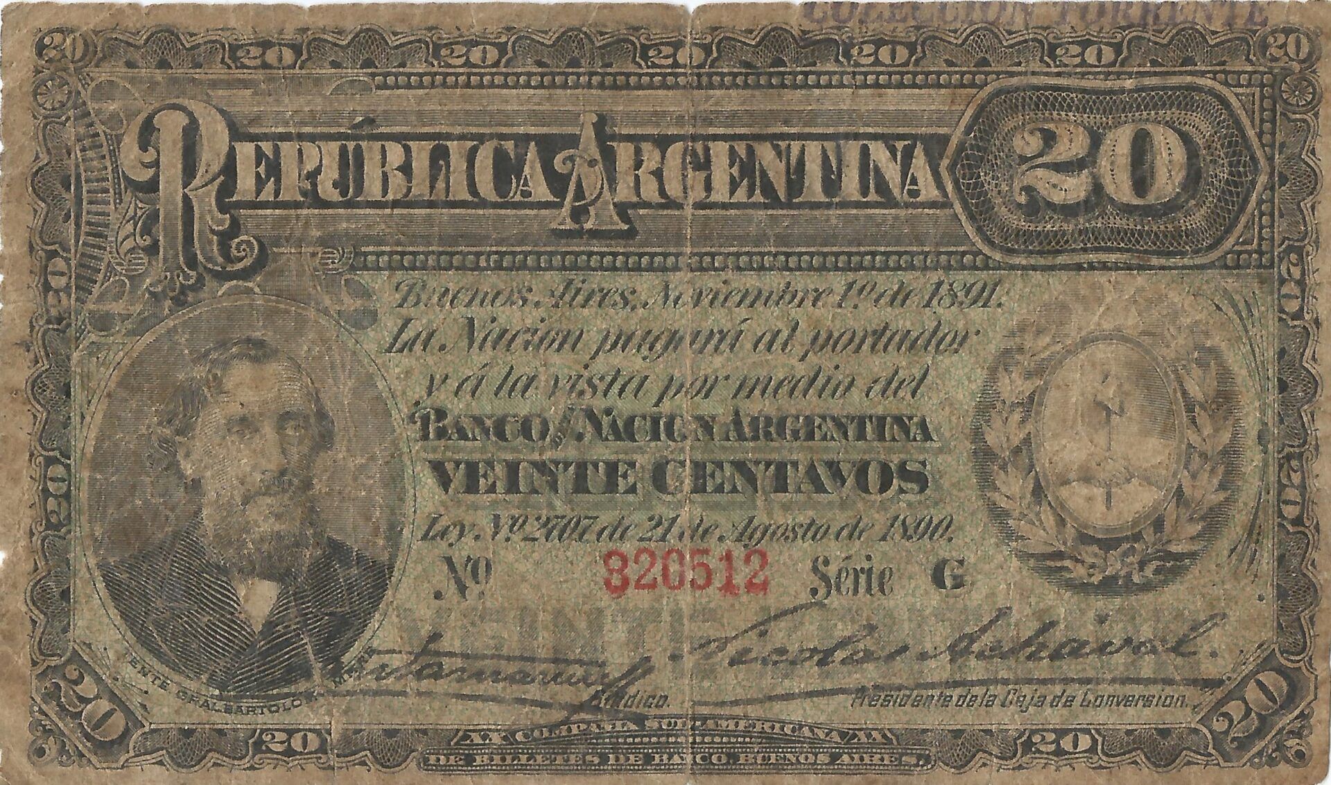 El 7 de Octubre de 1890, el Doctor Carlos Pellegrini, Presidente de la República Argentina, crea la Caja de Conversión, que nuclea la impresión, habilitando y emitiendo todo el papel moneda nacional. Los primeros billetes son emitidos con fecha 5 de septiembre de 1890.