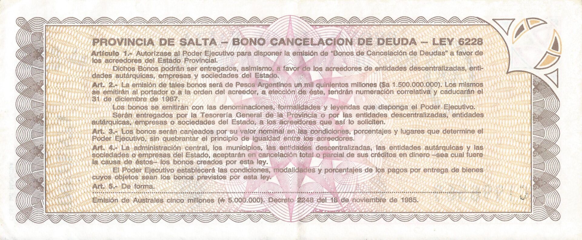Fueron creados como una solución temporal a la falta de dinero circulante debido a la crisis financiera y económica de 2001. Se emitieron bonos por valores de 2, 5, 10, 20, 50 y 100 pesos.