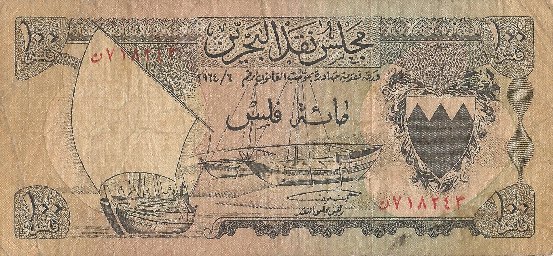En 1965, el Consejo Monetario de Baréin introdujo billetes en denominaciones de 100 fils, ¼, ½, 1, 5 y 10 dinares. En 1973, la Agencia Monetaria de Baréin asumió la competencia para emitir billetes, e introdujo denominaciones de ½, 1, 5, 10 y 20 dinares. En 2006, la Agencia cambió su nombre al de Banco Central de Baréin.