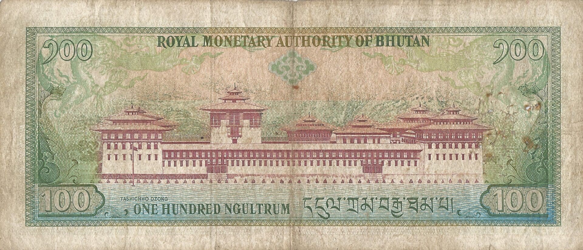 En 1974, el gobierno de Bután introdujo billetes de 1, 5 y 10 ngultrum, seguidos en 1978 de los de 100 ngultrum, y en 1981 las denominaciones de 2, 20 y 50 ngultrum. En 1986 la Real Autoridad Monetaria de Bután asumió las competencias de emisión de billetes, introduciendo denominaciones de 1, 5, 10, 20, 50, 100 y 500 ngultrum.