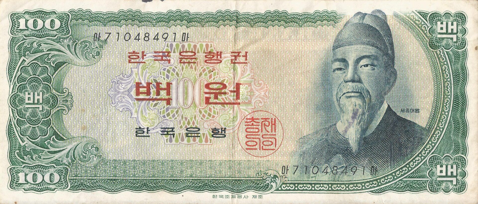 En 1965, los billetes de 100 wones de la tercera serie se imprimió utilizando la técnica del intaglio para reducir la falsificación. En 1966 se introdujeron billetes impresos en el Reino Unido con la misma técnica, y en 1969 los de 50 won utilizando técnicas litográficas.