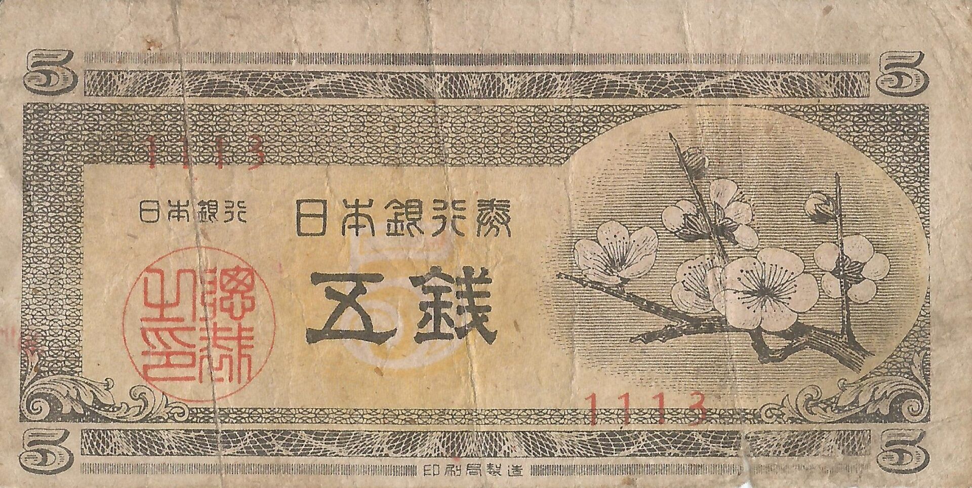- 1.8 Gran gobierno imperial japonés – Serie «Paper Money» 1938