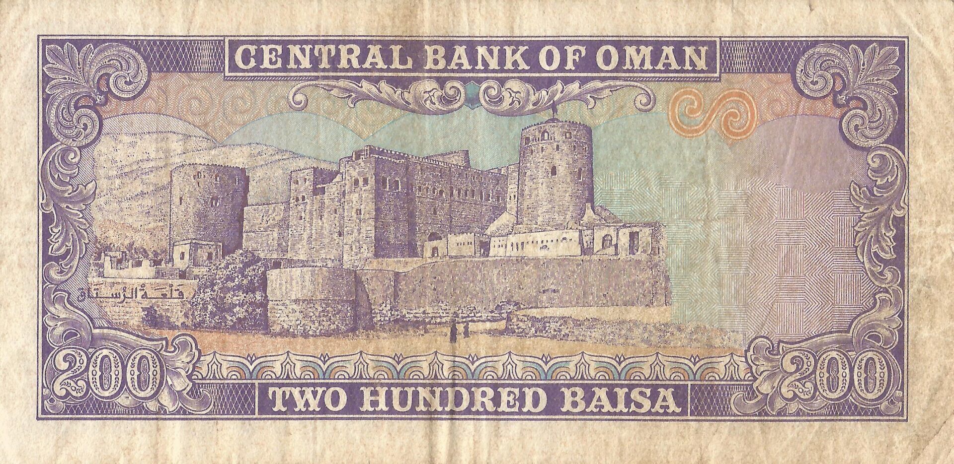 En 1970 el gobierno introdujo billetes en denominaciones de 100 baisa, ¼, ½, 1, 5 y 10 riales saidíes. En 1973 se sustituyó esta serie por billetes denominados en riales omaníes, a cargo del Comité Monetario de Omán. Desde 1977, el Banco Central de Omán se ha encargado de emitir los billetes, con la novedad de introducir las denominaciones de 20 y 50 riales, y en 1985 los billetes de 200 baisa.