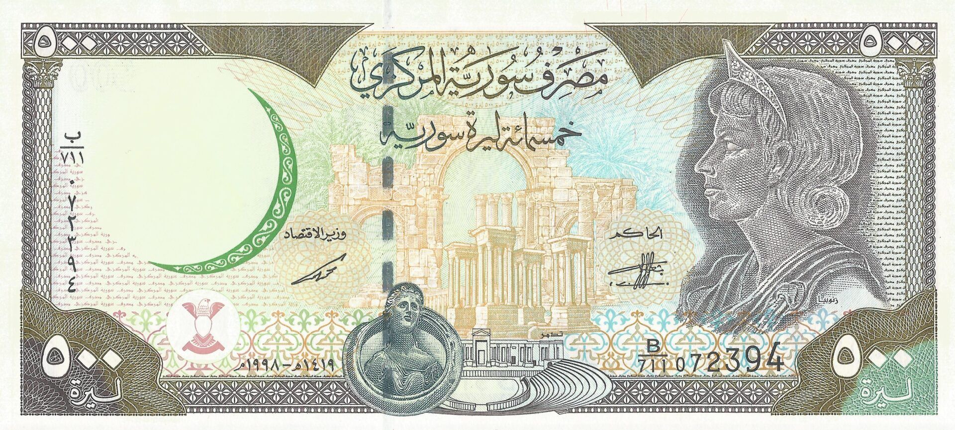 En 1958, el idioma francés se ha retirado de los billetes en Siria y sustituido por el inglés. Fueron emitidos billetes de 1, 5, 10, 25, 50, 100 y 500 libras. Los billetes de 500 libras sólo se publicaron con fecha 1958, pero fueron reintroducidos en 1976. En 1997 y 1998, una nueva serie de billetes fueron presentados en denominaciones de 50, 100, 200, 500 y 1000 libras, con las denominaciones más bajas sustituidas por monedas.