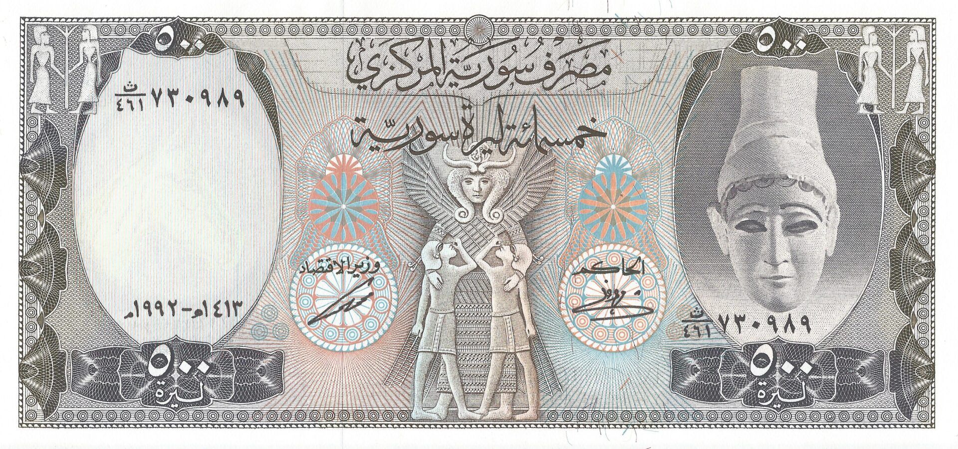 Entre 1942 y 1944, el gobierno introdujo billetes de 5, 10, 25 y 50 qirsha. A principios del decenio de 1950 billetes sin fecha fueron emitidos por el Instituto de Emisión de Siria en denominaciones de 1, 5, 10, 25, 50 y 100 Libras, seguido de billetes de fecha 1955 para las denominaciones 10 y 25 Libras. La Banque Centrale de Siria se hizo cargo de documento de emisión de dinero en 1957, la emisión de las mismas denominaciones como el Institut d’emisión.