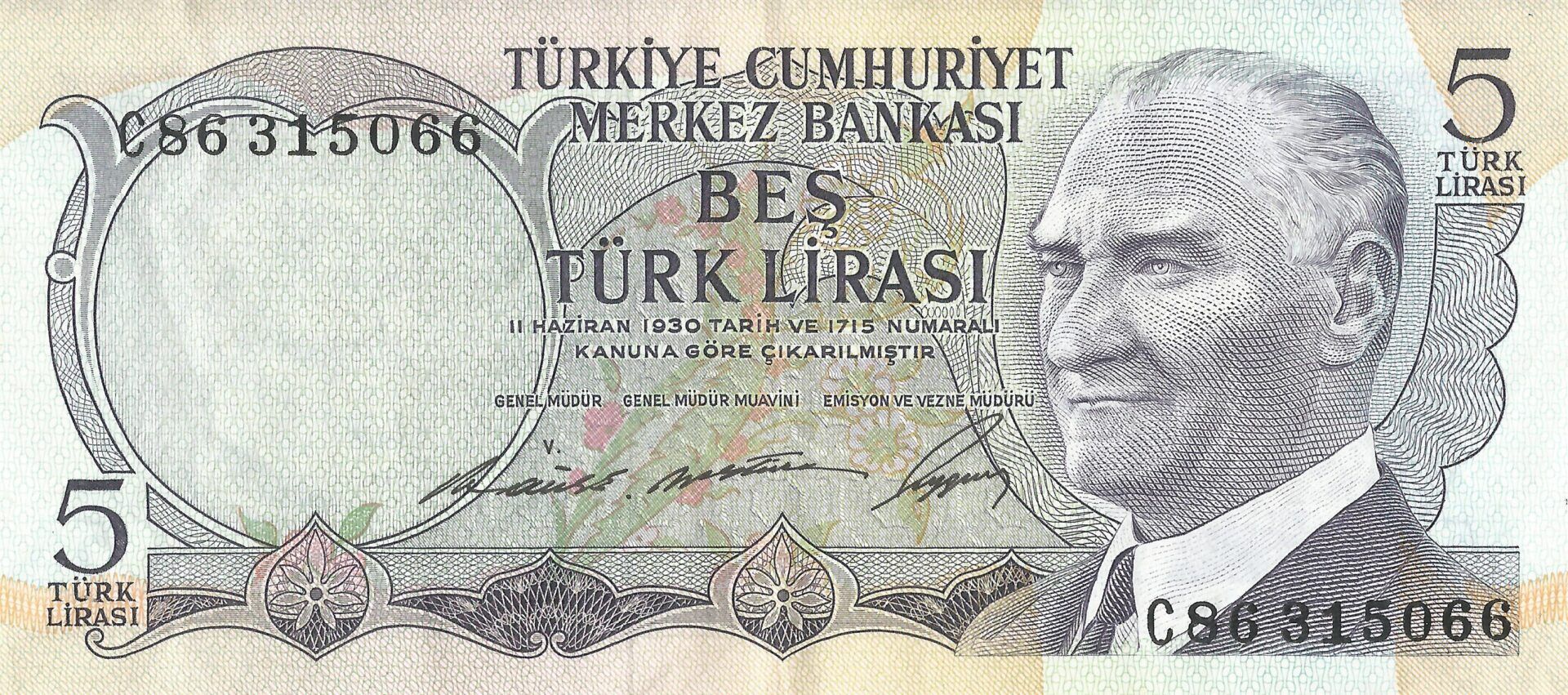 En 1926, el Ministerio de Economía introdujo los primeros billetes en nombre de la República de Turquía en denominaciones de 1, 5, 10, 50, 100, 500 y 1.000 liras. Estos billetes fueron los últimos en imprimirse en francés y turco (con escritura árabe). Cada billete tenía el retrato de Mustafa Kemal Atatürk.