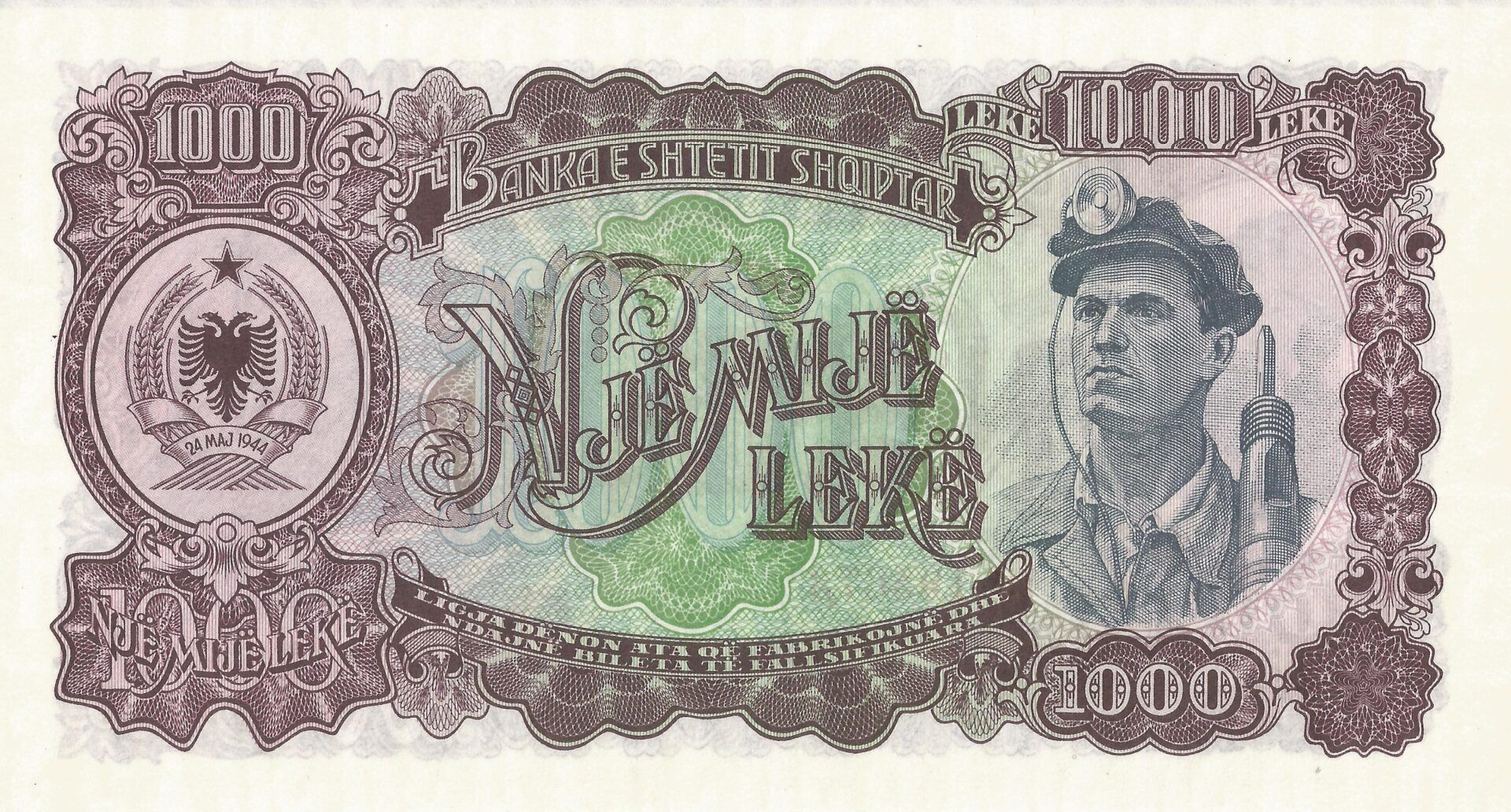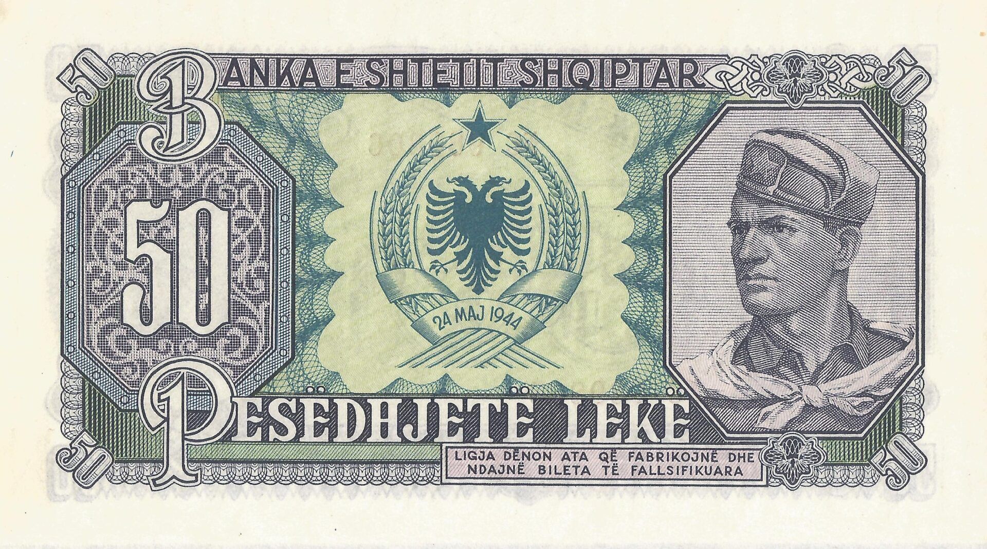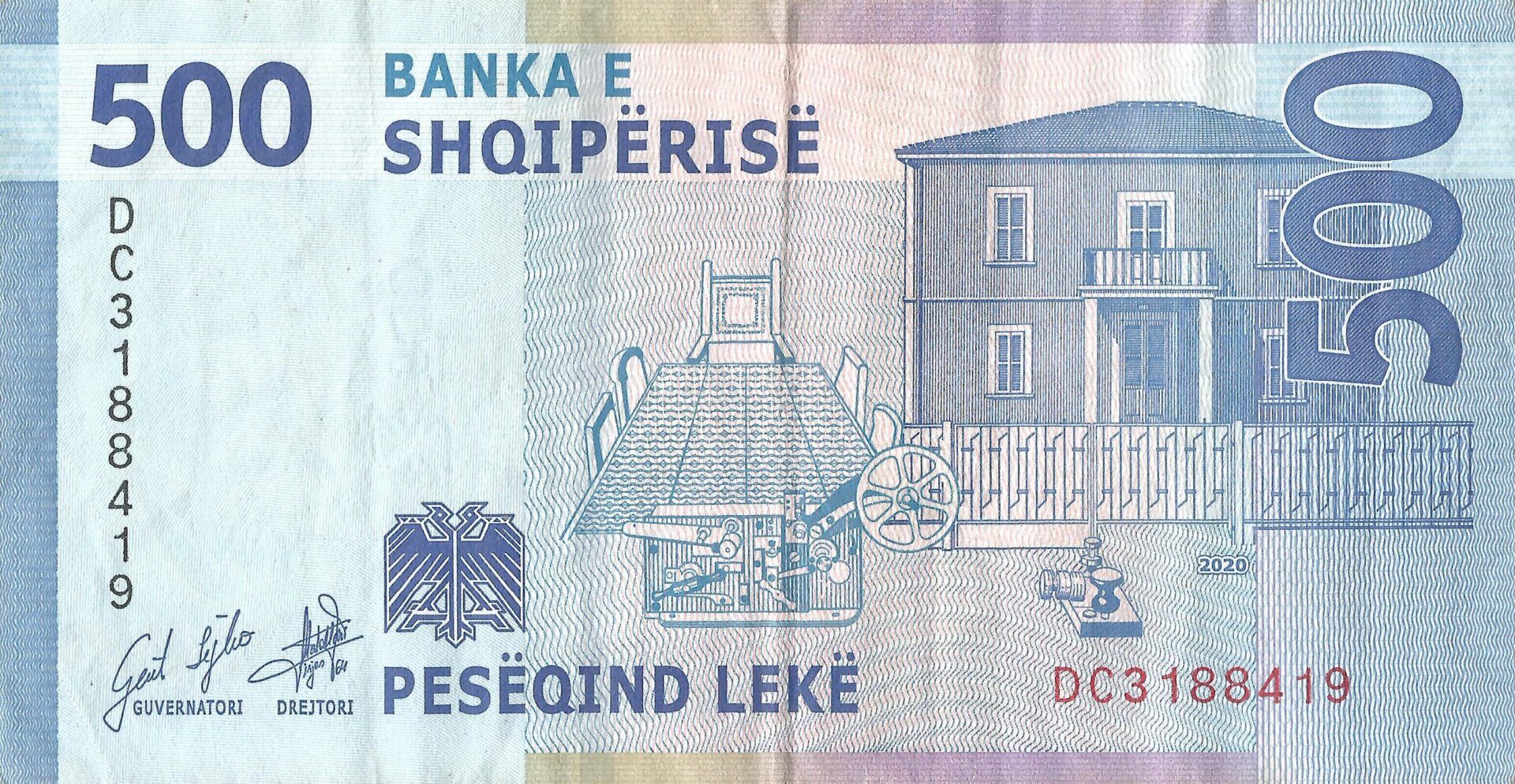 En 1945 el Banco del Pueblo de Albania (Banka e Shtetit Shqiptar) emitió sobreimpresiones sobre billetes del Banco Nacional para 10 lekë, 20 y 100 franga. También fueron emitidos billetes regulares de 1, 5, 20, 100 y 500 franga. En 1947 el lek fue adoptado como denominación principal, con billetes emitidos de 10, 50, 100, 500 y 1.000 lekë.