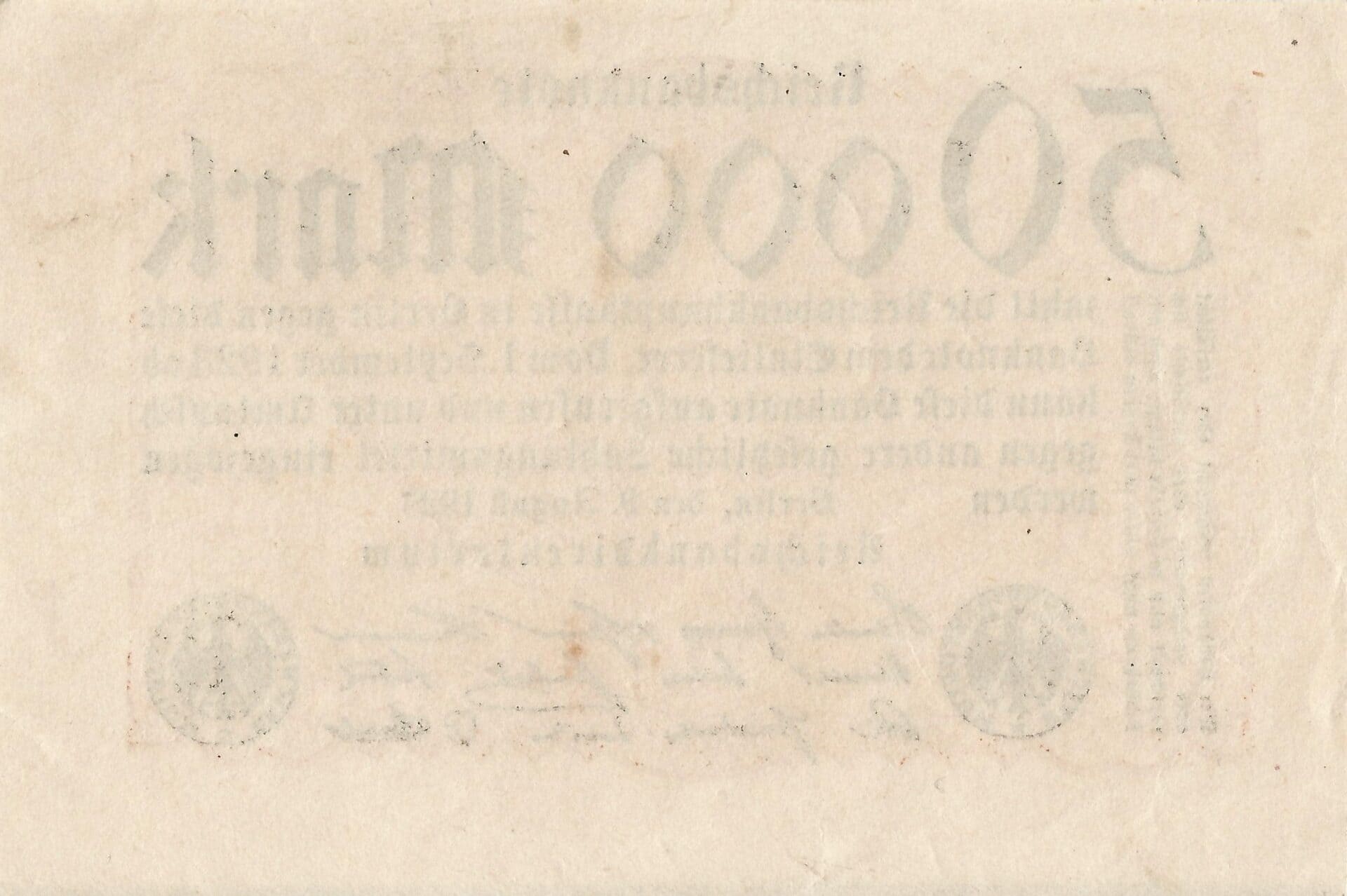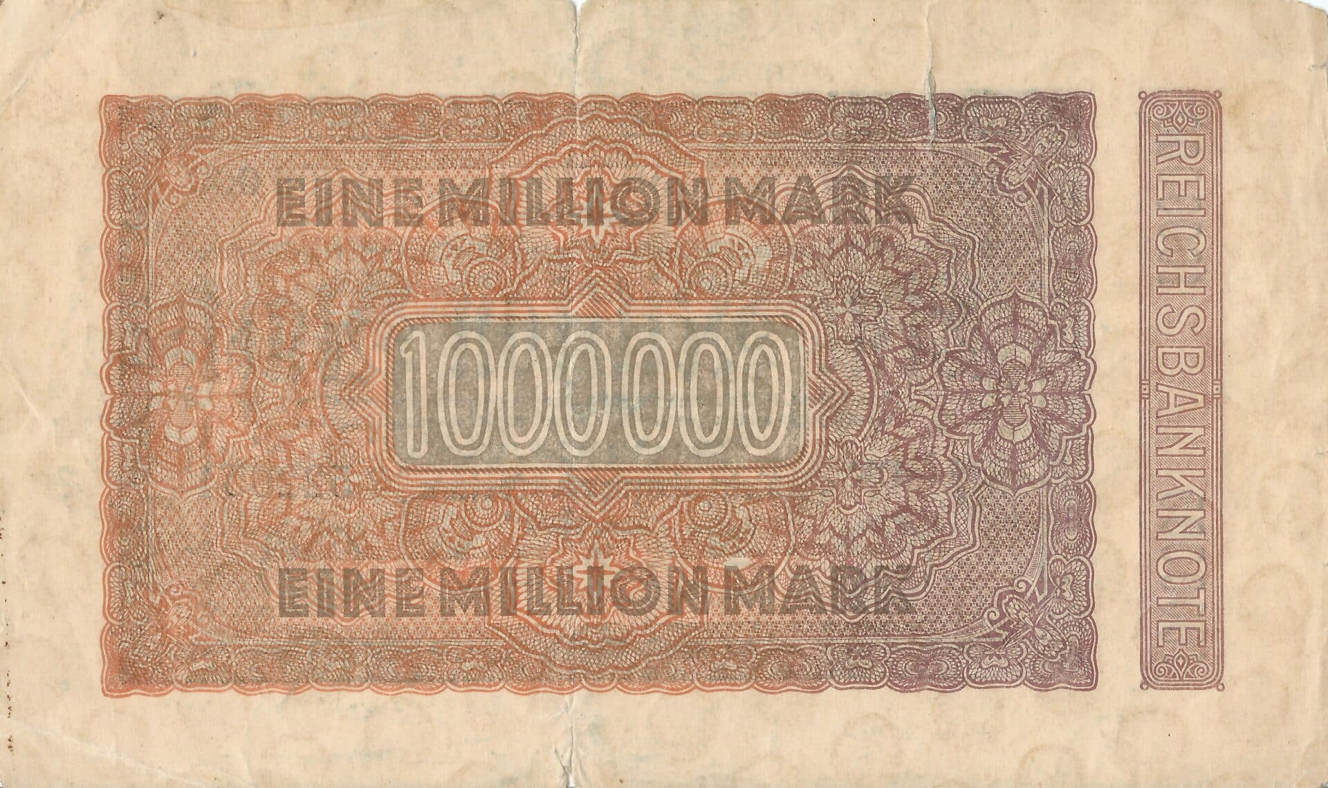 Durante la hiperinflación, el Reichsbank y otras instituciones (entre las que se destaca la compañía de ferrocarriles Reichsbahn) emitieron papel moneda con denominaciones aún mayores. El Papiermark se producía y circulaba en cantidades inmensas. Previo a la guerra, el billete de mayor denominación era el de 1000 marcos, que equivalía aproximadamente a 50 libras esterlinas o 238 dólares estadounidenses. A comienzos de 1922 aparecieron los billetes de 10.000 marcos, seguidos por billetes de 100.000 y 1 millón de marcos en febrero de 1923. En julio de 1923 entraron en circulación billetes de 50 millones de marcos y en septiembre, de 10 mil millones (1010). El pico de inflación ocurrió en octubre y la denominaciones alcanzaron los 100 billones (1014) de marcos. Al concluir la hiperinflación, estos mismos billetes valían aproximadamente 5 libras o 24 dólares.