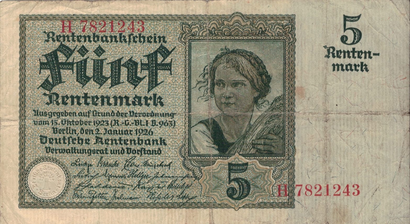 El Rentenmark sustituyó al antiguo Papiermark, el papel moneda utilizado por los gobiernos alemanes desde el inicio de la Gran Guerra y que no estaba respaldado por oro. Debido a la crisis económica en Alemania, después de la Primera Guerra Mundial el gobierno de la República de Weimar carecía de reservas de oro disponible para revalorar la moneda. Por lo tanto, el Banco Central o Deustche Reischsbank emitía billetes carentes de respaldo, y que por lo tanto perdían valor con inusitada rapidez, causando una hiperinflación que perjudicaba gravemente la economía nacional.