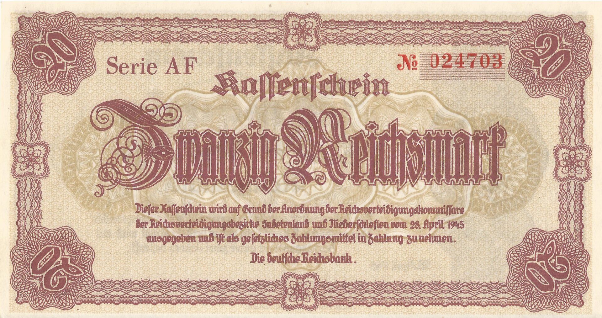 - 1.4 Reichsbanknote – Serie de Emergencia 1945