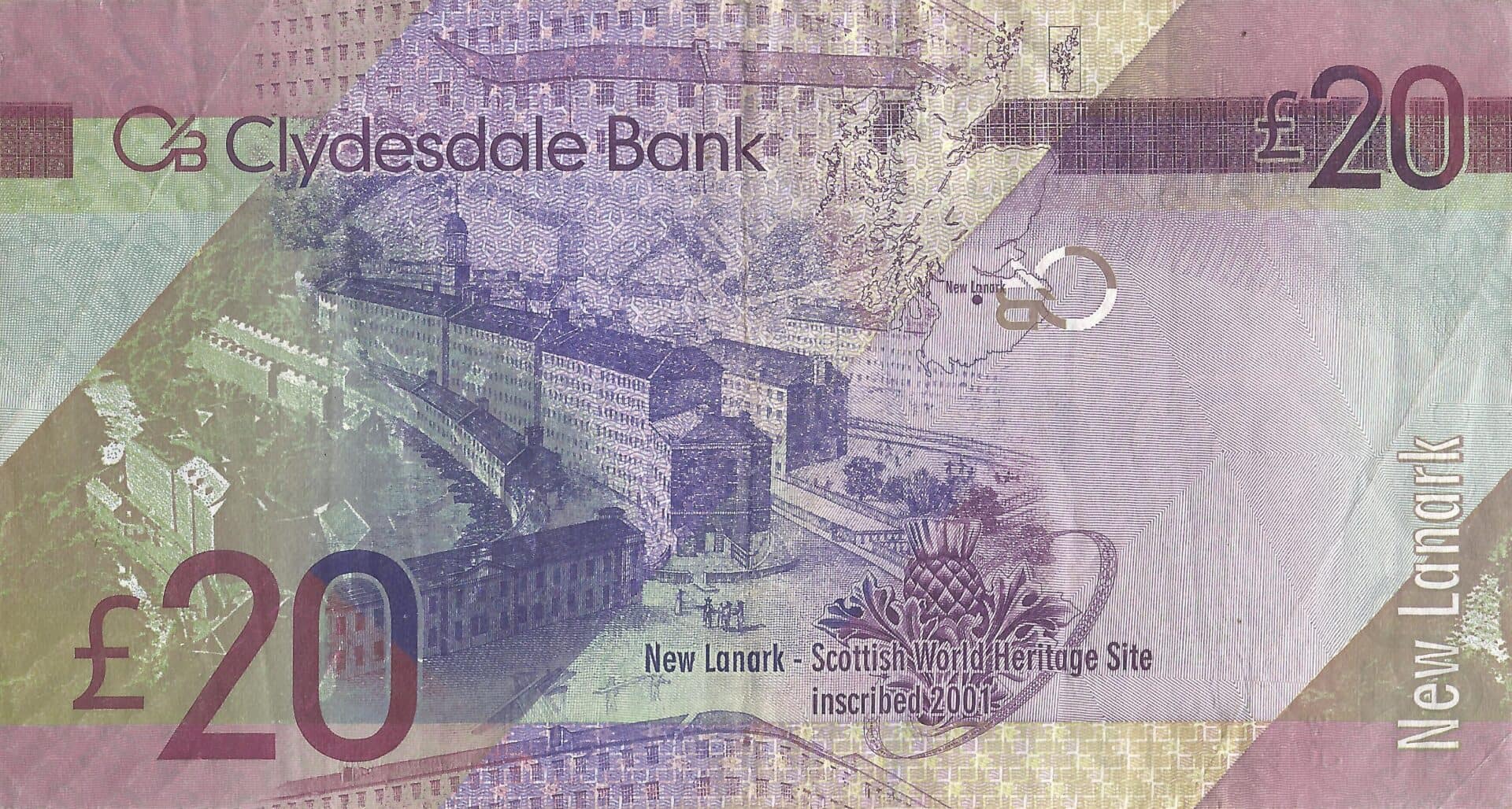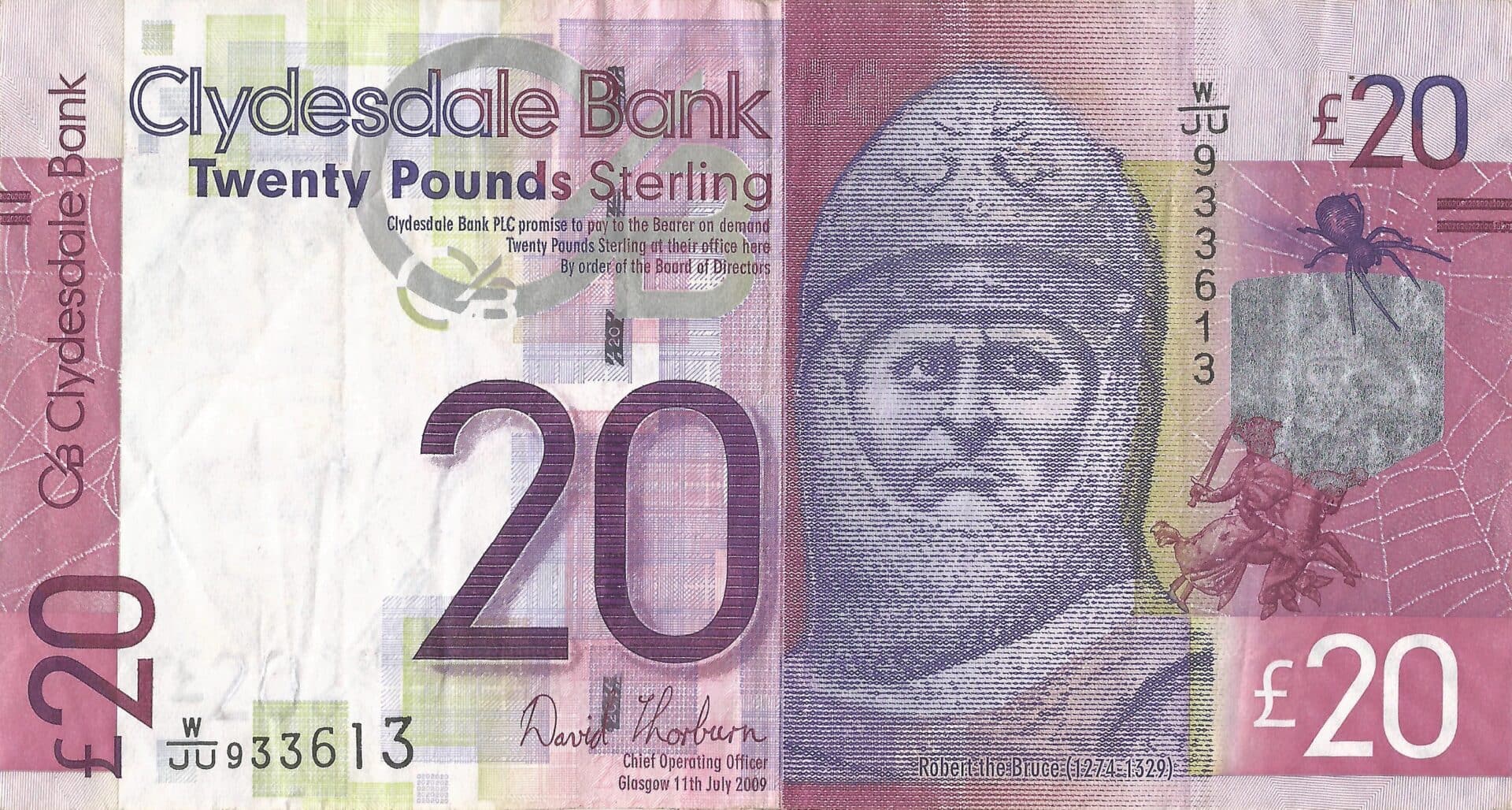 Aunque el Banco de Inglaterra es el banco central del Reino Unido, tres bancos escoceses todavía tienen la potestad de producir sus propios billetes: el Bank of Scotland, el Royal Bank of Scotland y el Clydesdale Bank. El valor de los billetes escoceses en circulación se estima en unos 1 500 millones de libras, y pese a que oficialmente no es una moneda de curso legal en ningún lugar del Reino Unido, en la práctica estos billetes son intercambiables con los producidos por el Banco de Inglaterra. Pese a esta equivalencia, los billetes emitidos en Escocia son en ocasiones rechazados en Inglaterra y Gales, y no siempre son aceptados por otros bancos y oficinas de cambio de divisas fuera del Reino Unido. Esto es especialmente cierto con el billete de 1 libra que todavía emite el Royal Bank of Scotland, y que es el único billete de 1 libra que permanece en circulación en todo el Reino Unido.