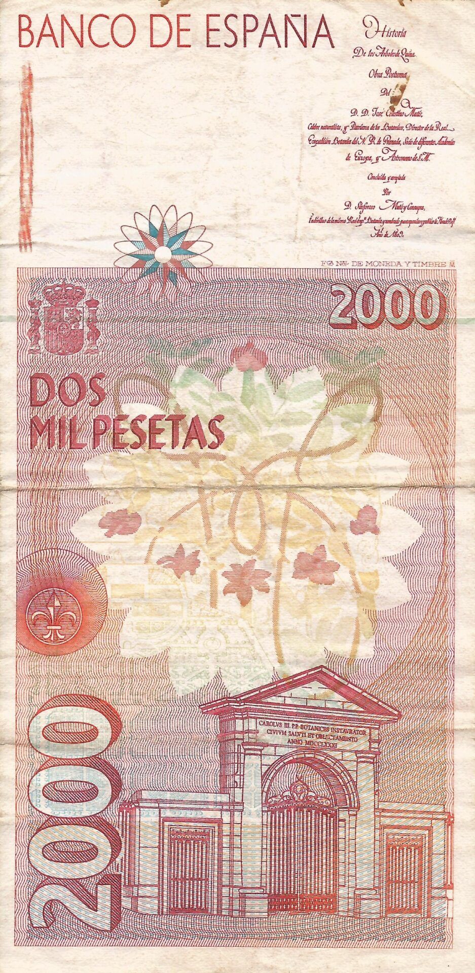 En 1992, el Banco de España emitió su última serie antes del inicio del euro. Fue creada en colaboración con la Oficina federal alemana de impresión, realizada por el artista gráfico Reinhold Gerstetter e impresa por la Fábrica Nacional de Moneda y Timbre. Con esta nueva serie, el objetivo del Banco de España era el de fortalecer la seguridad a través textos microimpresos e impresiones codificadas visibles solo con lupa.