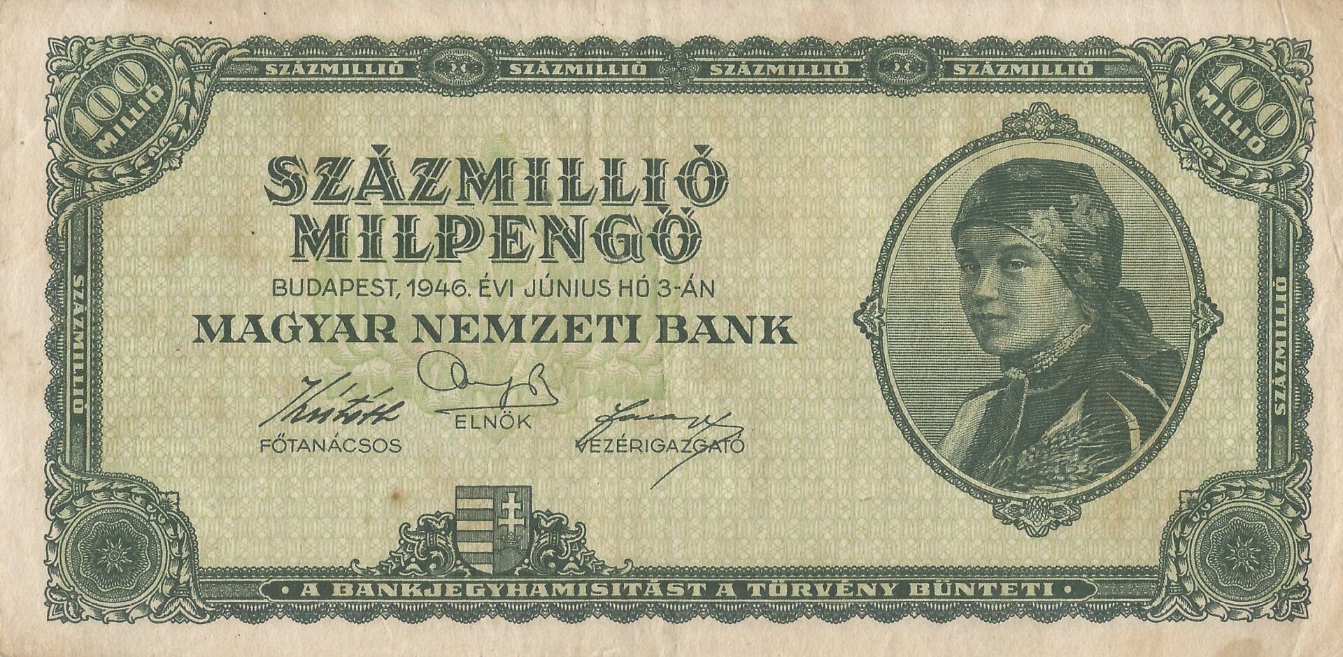 El pengő perdió su valor después de la Segunda Guerra Mundial, sufriendo la tasa más alta de hiperinflación de todos los tiempos. El pengő fue revaluado, pero esto no detuvo la espiral de la hiperinflación, y los precios continuaban fuera de control. Cada vez se introdujeron denominaciones más altas en los billetes emitidos, alcanzando un máximo de mil trillones (1021) de pengős, que fue impresa pero jamás emitida. La denominación más alta en uso fue de cien trillones (1020) de pengő.