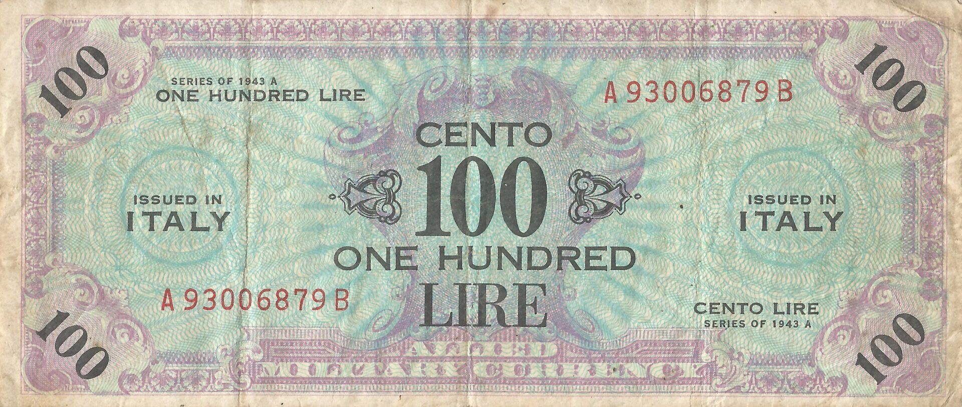 En 1943, el bando aliado introdujo billetes de 1, 2, 5, 10, 50, 100, 500 y 1,000 liras, seguidos en 1944 de una serie de Biglietti dello Stato de 1, 2, 5 y 10 liras, que circularon hasta ser reemplazados por las monedas de la última década de los años 40. En 1945, la Banca introdujo billetes de 5.000 y 10.000 liras.
