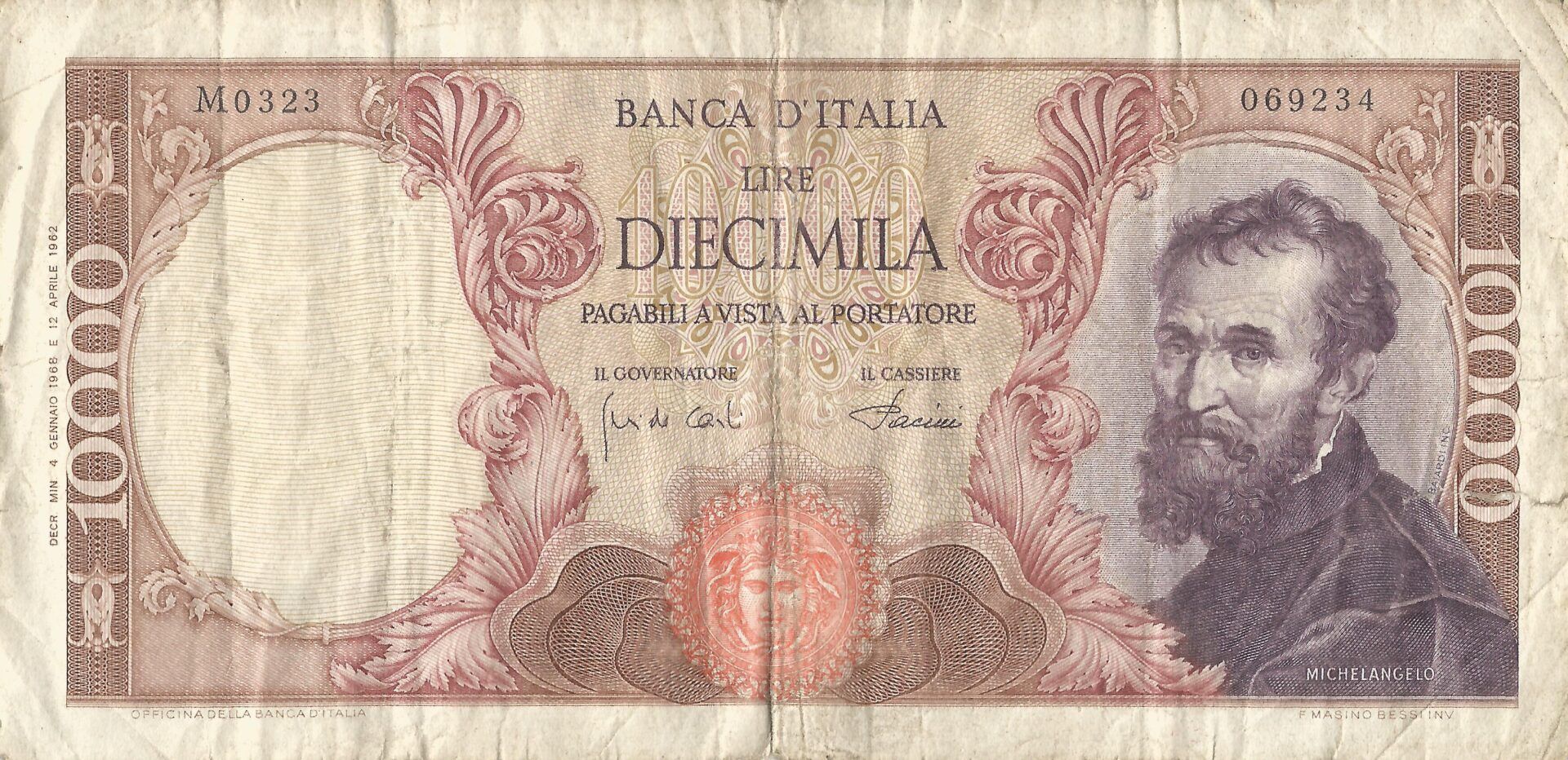 En 1967 se imprimieron billetes de 50,000 y 100,000 liras, seguidos de las denominaciones de 20.000 liras en 1975 y 500,000 liras en 1997.