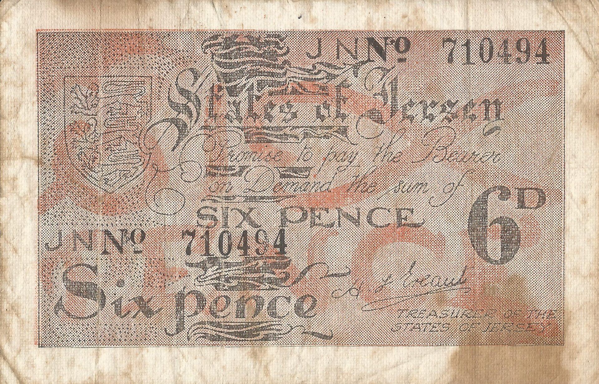 En los actuales billetes de libra Jersey en su anverso la figura de la Reina Isabel II del Reino Unido y en el reverso varias imágenes de accidentes en la historia de Jersey. Su marca de agua es el Ganado Jersey.