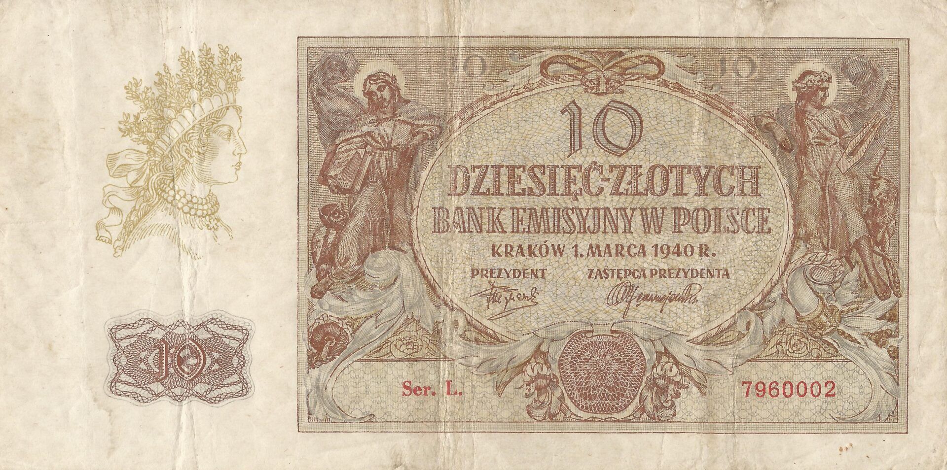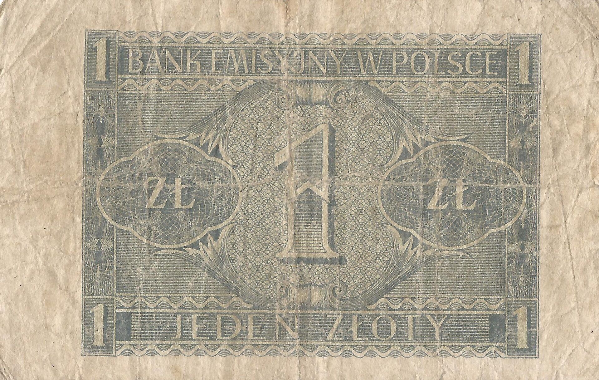 Se crea el nuevo Banco Emisor de Polonia y a partir de mayo de 1940, los viejos billetes (emitidos de 1924 a 1939) fueron sellados con la nueva entidad monetaria alemana, el Reichsmark.