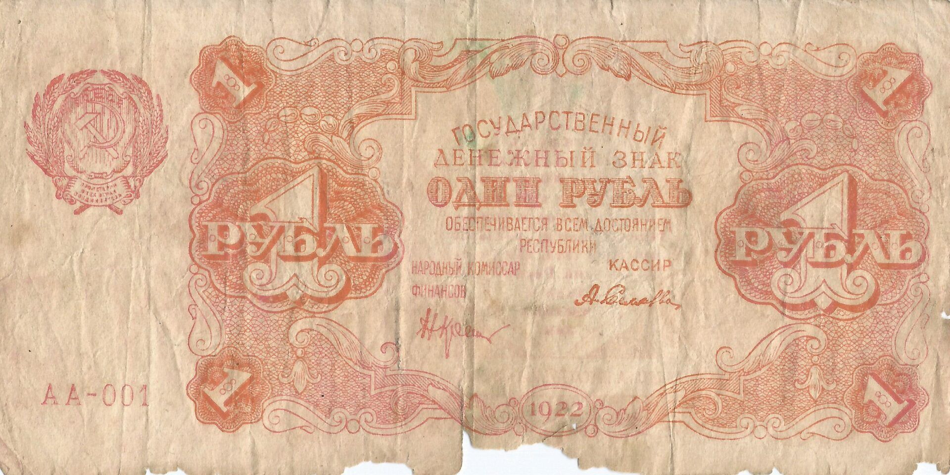 Durante 1922 se llevaron a cabo varias redenominaciones que dieron lugar a un nuevo rublo equivalente a 10 000 rublos antiguos. También se introdujeron los chervonets.