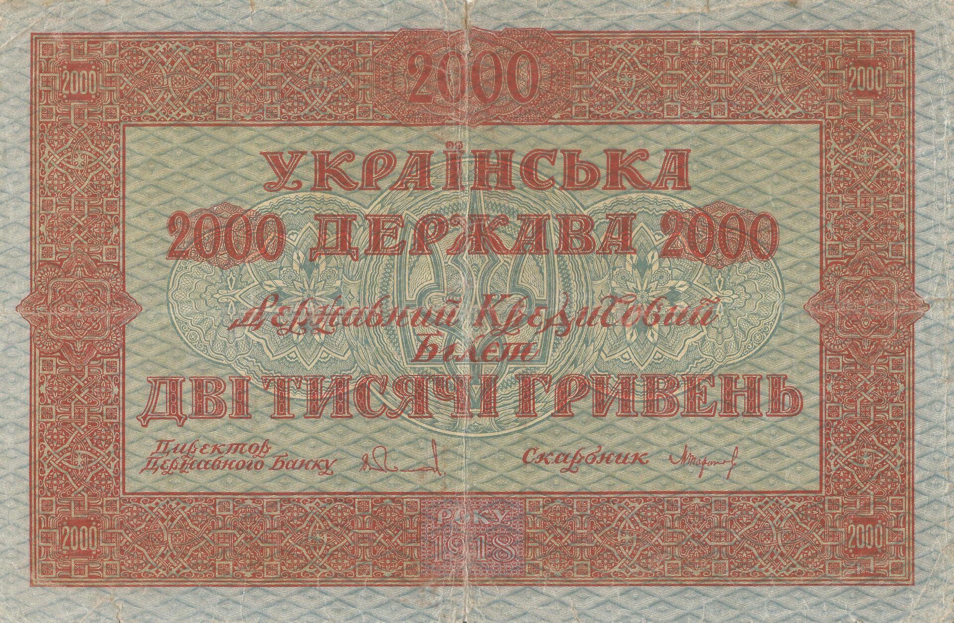 El 17 de octubre de 1918, el Hetman recibió de Alemania otra remesa de billetes en denominaciones de 2, 10 y 100 grivnias. Más tarde se recibieron billetes de 1.000 y 2.000 grivnias, debido a la inflación que sufría Ucrania. Estos billetes incorporaban las siglas del Estado Ucraniano: УД (Українська Держава). Estas grivnias se emitieron el 17 de octubre de 1918, 59 días antes del derrocamiento del Hetman.