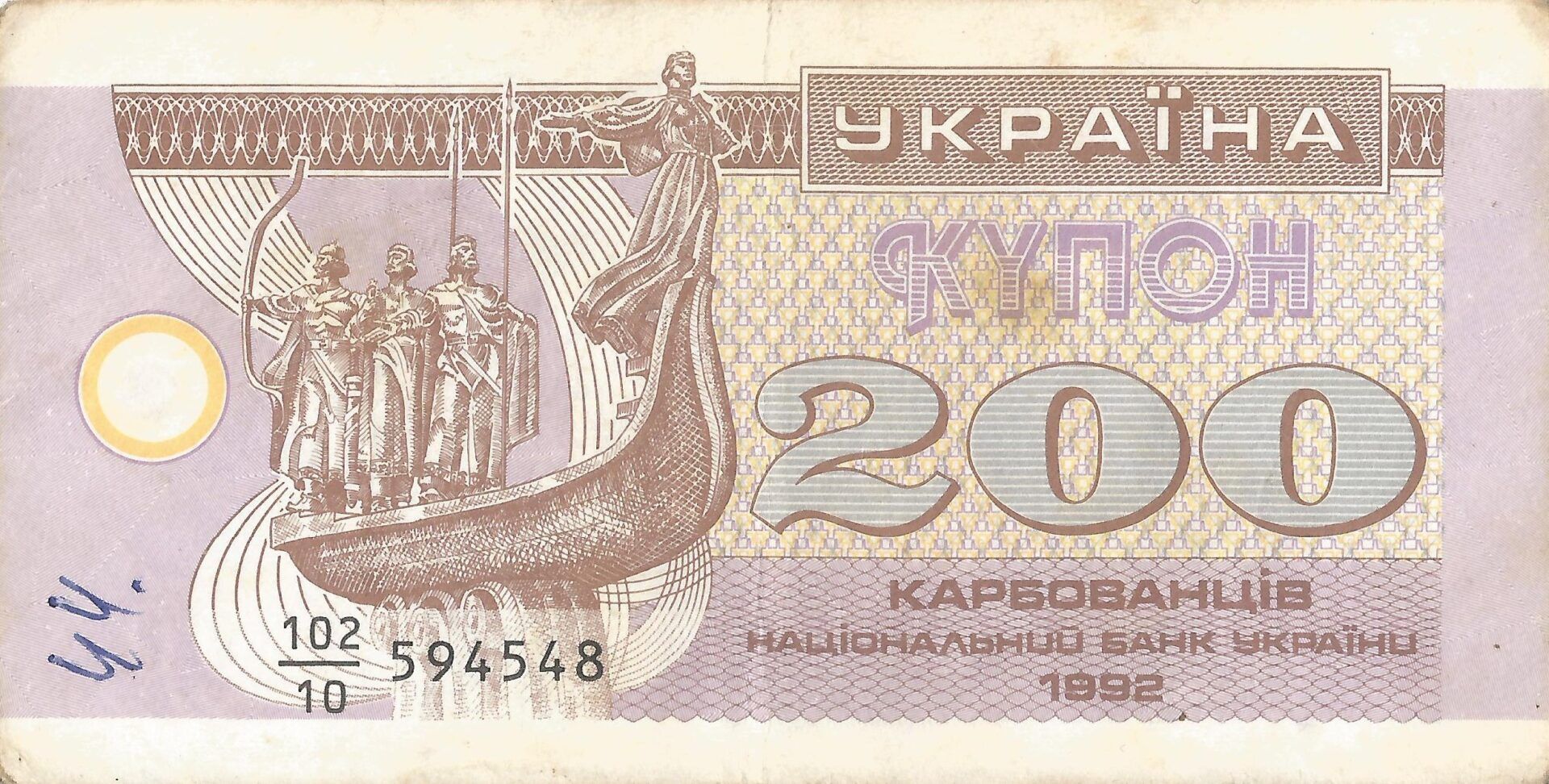 En noviembre de 1990, con el colapso del modelo soviético de gobierno y el fin de éste condujo a la desaparición del esquema de una economía centralizada, la nueva RSS de Ucrania emitió cupones temporales que se distribuyeron entre la población. Estos cupones circulaban junto al rublo soviético y servían para comprar verduras y otros bienes básicos. El 10 de enero de 1992, el karbóvanets sustituyó al rublo soviético a la par.